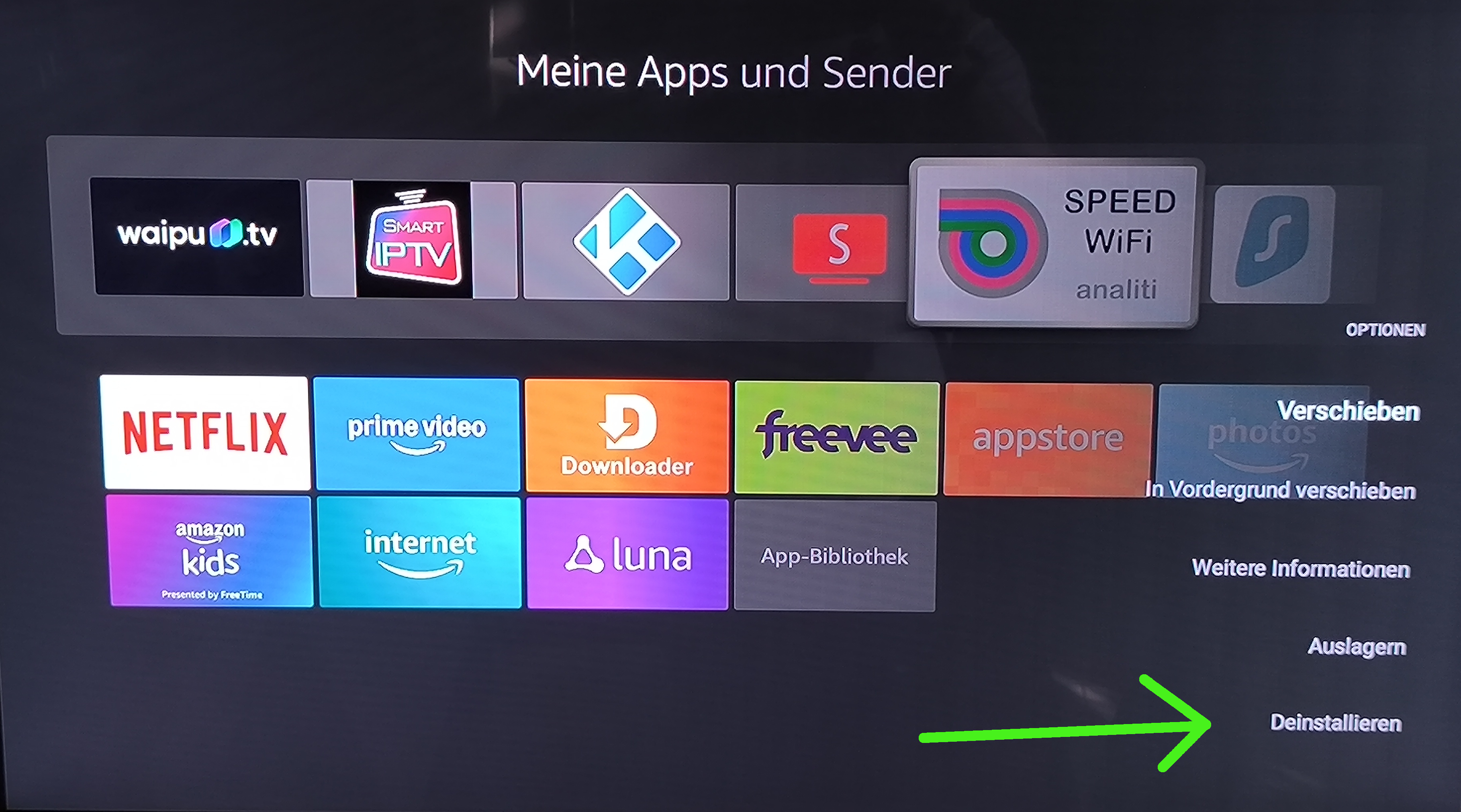 Amazon unterstützt die Installation von Analiti nicht mehr. Aus diesem Grund muss die App einmal deinstalliert und wieder neu installiert werden. Wie das geht, nachfolgend die Bildbeschreibung.